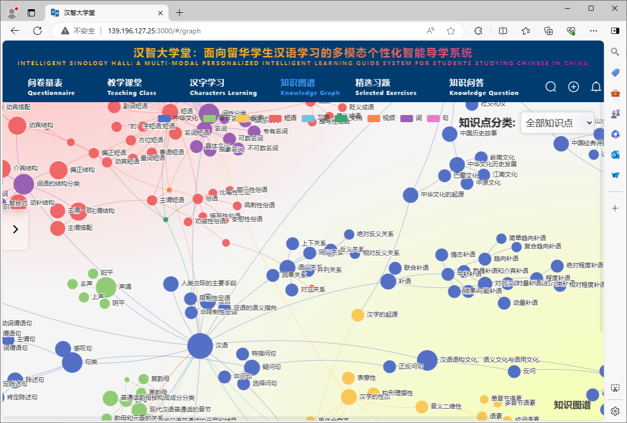 图3 面向留华学生汉语学习的多模态个性化智能导学系统的知识知识图谱