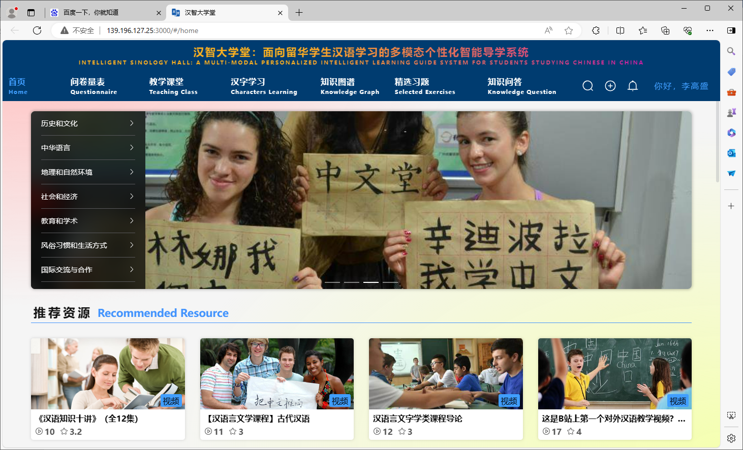 图1 面向留华学生汉语学习的多模态个性化智能导学系统的首页