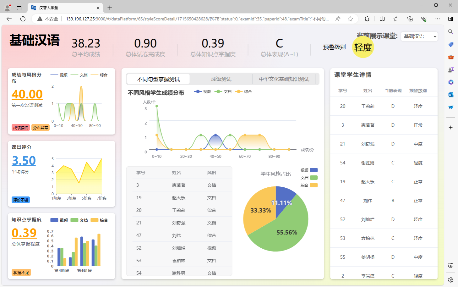 图2 面向留华学生汉语学习的多模态个性化智能导学系统的数据大屏
