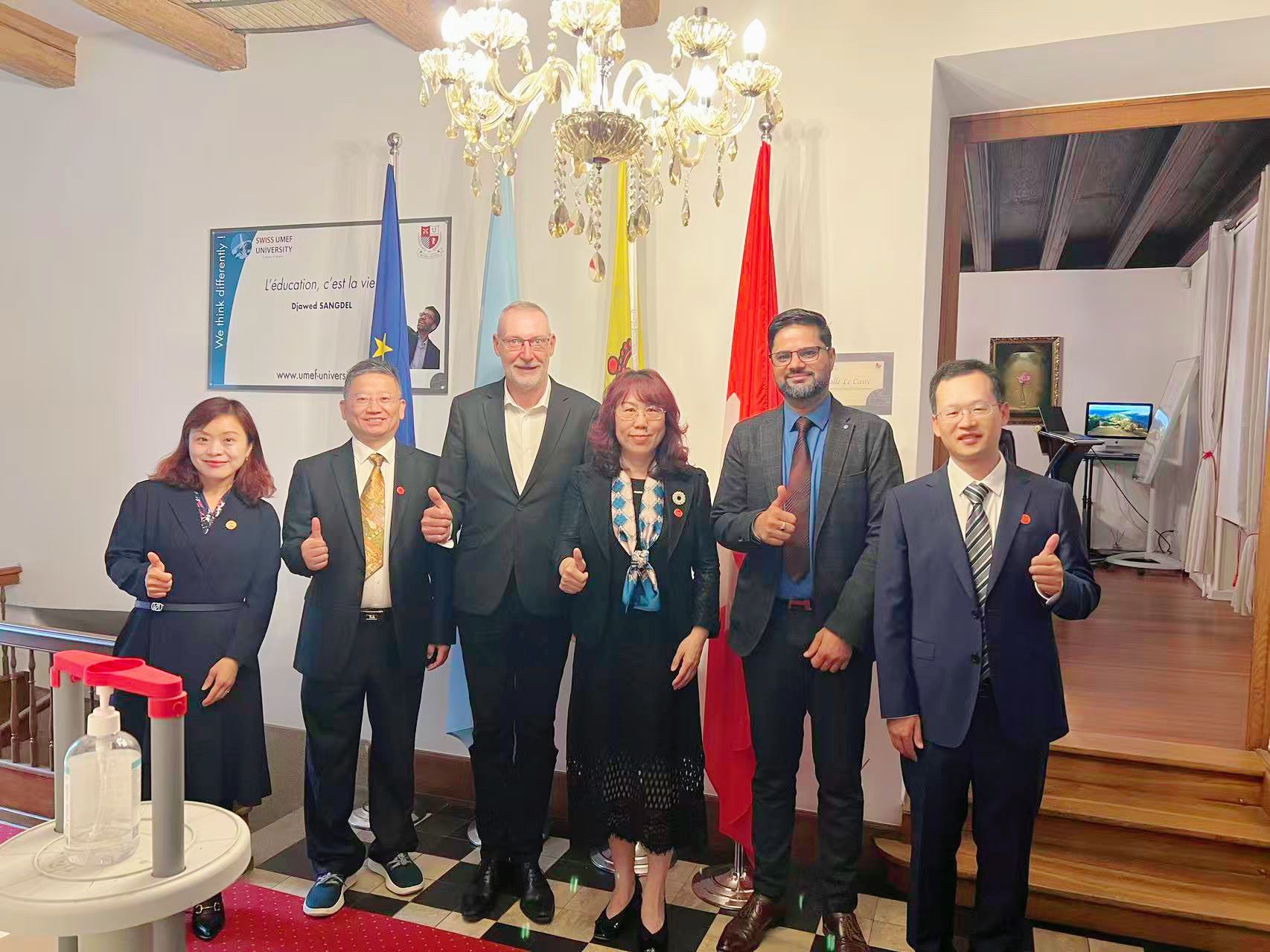 9月8日上午,代表团访问瑞士UMEF大学日内瓦校区,与副校长兼教务长DidierGarzotto教授、学生处处长Dimitrios Koukourdinos教授、数字培训部主任Sunil Kumar教授进行了学术交流。曾艳钰回顾了两校既有的合作基础,并围绕区域国别人才培养、精准国际传播联合实验室建设、暑期短期项目合作等提出具体建议。双方同意尽快落实学生交换、教师互访和科研协同等机制,共同打造中瑞教育合作新平台。